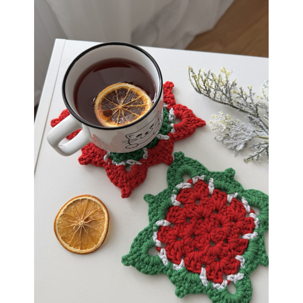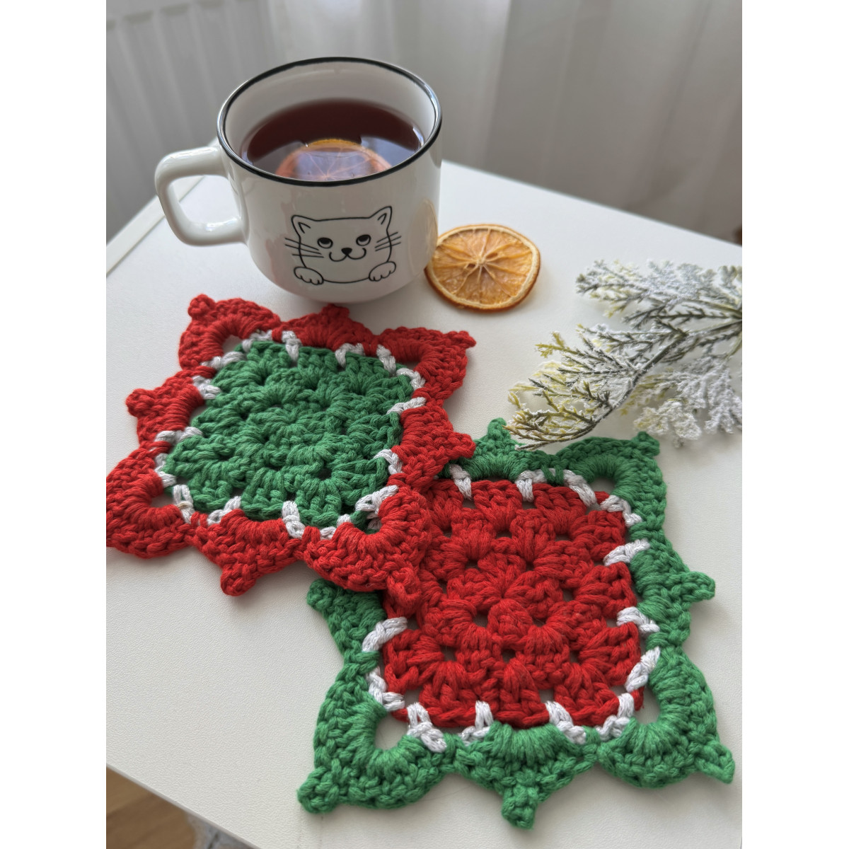 Підставки під чашки, 2 шт Зелена/червона